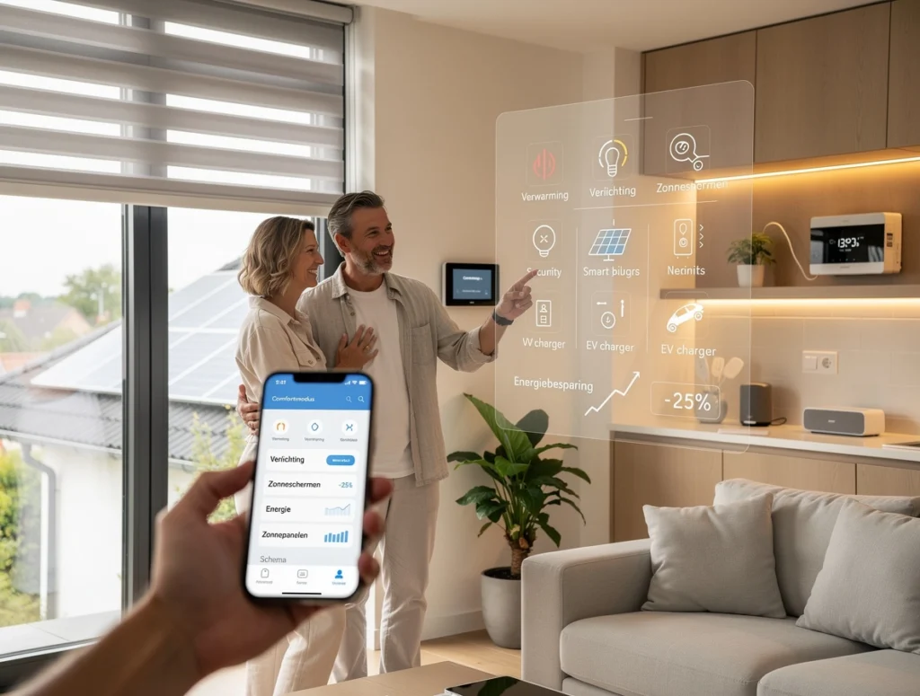 - Efficiënte verwarming en koeling : Zoneverwarming en slimme thermostaten passen de temperatuur aan per ruimte en op basis van je routines.